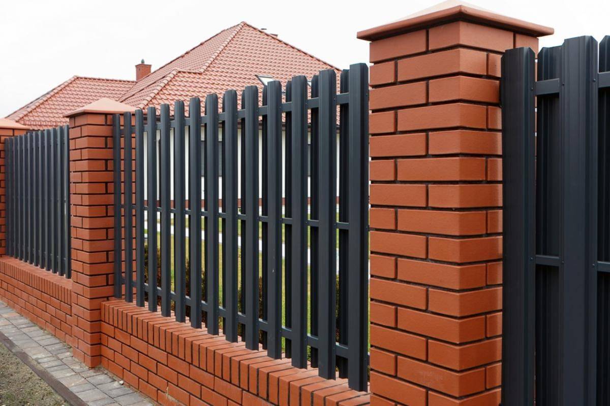 Заборы и ограждения из евроштакетника с кирпичными столбами 6 соток в Электрогорске